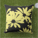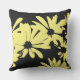 Kussen bedrukt met digitaal gemaakt abstract madeliefjespatroon in geel en zwart.