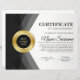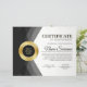 Professionele moderne zwarte en gouden certificaat van prestatie award flyer sjabloon met een gouden omlijsting op "certificate", zwarte en gouden medaille met blad ontwerp, en een zacht grijze achtergrond. Aanpassen naar uw wens.