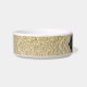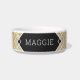 Goudglitter en zwarte gepersonaliseerde hondenkom met een kunstdeco boho mashup-ontwerp met een modern, geometrisch overlappend abstract chevron-patroon met de naam van uw kat of huisdier die direct op de elegante kom is gedrukt.