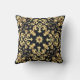 Dit is een kussen met een zwart en goud patroon. De kleuren en de achtergrond doen me denken aan luipaard.