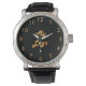 Voeg je eigen zakelijke logo toe aan dit horloge. Zwarte achtergrond. Ideaal om uw bedrijf en merk te promoten. Faux gouden klokkengetallen.