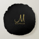 Custom Modern Elegant Sjabloon Typografie Hand Script Monogram Home Decor / Kussens & poefs / Sierkussennen / Zwart en Gouden Ronde Kussen.