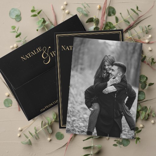 Zwart Goud Victoriaans Gepersonaliseerde Bruiloft Kaart