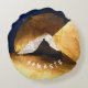 Moderne Yoga Fitness Studio / Meditatie Instructeur / Personal Trainer / Life Coach / Healer / Reiki Master / Massage Therapie Ronde Kussen. Zwart goud yogameditatie instructeur Reiki Master Elegant schilderij dat een yogi mediteert met goudfolie collage elementen, de achtergrond van het schilderij Shows een goudfolieberg die boven de yogi stijgt. De berg is gemaakt van goudfolie collage elementen. De berg symboliseert de hoogte van het Spirituele bereik van de yogi en de straling van hun innerlijk licht. De donkerblauwe hemel suggereert de uitgestrektheid en het mysterie van het universum, evenals de verbinding tussen de yogi en de kosmische energie.