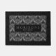 Elegante zwarte damasks over grijze achtergrond met zwart lijst en aangepaste familienaam.