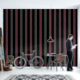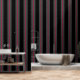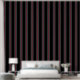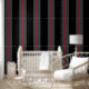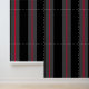 Een zwart grijs en rood gecentreerd ultra breed zes inch luifel streep behang. Dramatisch en zwoel.