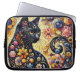 Zwart grillig kat Abstract bloemschilderij kunst Laptop Sleeve