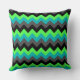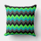 Een 20" x 20" gooien kussen met een elegant patroon ontwerp van veelkleurige chevrons in zwart, grijs, groen en turquoise.