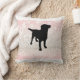 Zwart lab met lichtroze en wit kussen gemaakt van 100 procent polyester en rimpelvrij!
