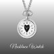 Ketting Horloge cadeau. Met een zwart liefdeshart en kloknummers op een witte achtergrond.