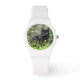 Foto van een zwarte Maine Coon Cat, weergegeven op een horloge.