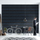 Zwart behang met blauwe hartjes. Voeg toe aan een hol, kinder slaapkamer of speelkamer