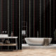 Zwart met rode en witte strepen behang
