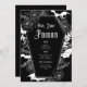 Omarm de betovering met dit elegante gotische trouwtafelteken, perfect voor een Halloween-bruiloft. Dit moderne, elegante ontwerp combineert een boho-donkere esthetiek met een humeurige, spookachtige sfeer en legt de essentie van een oktoberfeest vast. Ingewikkeld versierd met vleermuis- en spinnenwebmotieven, naast delicate bloemenelementen, toont dit barteken een opvallend zwart-wit kleurenpalet. Zet de toon voor uw speciale dag met een unieke mix van spookachtige schoonheid en tijdloze elegantie.