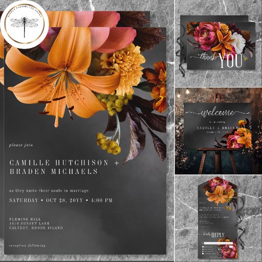 Black Moody Gothic Orange Lily WeddingOntworpen door Kathe Santillo