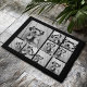 Zwart-negen fotovierkanaals collage - met script w deurmat