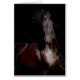 Dit is een originele foto van een krachtige Friessische hengst die uit de duisternis om hem heen komt.