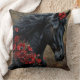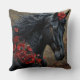 Een prachtig zwart paard versierd met levendige rode bloemen, die elegantie en schoonheid vastleggen in een rustige en natuurlijke buitenomgeving die gratie en inspiratie uitstraalt.