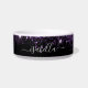Een stijlvolle zwarte achtergrond, versierd met paars faux glitter stof. Personaliseer en voeg jouw naam toe die met een trendy hand geschreven stijlmanuscript met swashes wordt geschreven. Om de spoelbeurten te houden schrap slechts de steekproefnaam, verlaat de ruimten of emoji's voor en na de naam.