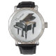 Sportief horloge perfect voor elke muziekliefhebber. Het bevat een afbeelding van een zwarte piano. Je past de naam bovenaan aan.