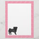 Zwart Pug Dog Cartoon Mops Love Hart Patroon Roze Briefhoofd
