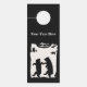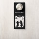 Deze papieren deurhanger heeft een zwart silhouet op wit afbeelding van een paar dansende beren in de bossen onder de bomen met een uil die vanuit een tak kijkt. Pas jouw tekst aan de voor- en achterkant aan met de sjabloon.