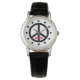 Een leuk retro geïnspireerd vredessymbool in klassiek zwart op een wit horlogegezicht. Personaliseer in Bright Red met uw keuze van tekst.