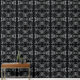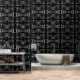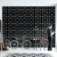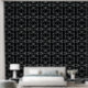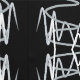 Zwart-wit symmetrisch patroon, witte en grijze lijnen en vormen op zwarte achtergrond