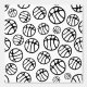 Zwart-wit Basketbal Ball Pattern Kinder achtergrond. Hand getekende abstracte basketbalballen in zwart op een witte achtergrond. Geweldig voor een kamer van een kind of kinderkamer of basketbalfan.