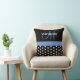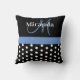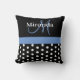 Zwart Wit Blauw Monogram Script Polka Dots Kussen
