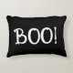 De achtergrond is voorzien van een aanpasbare zwarte effen kleur. Halloween thema accent kussen voor uw oktober decor. U kunt de boney "BOO!" typografie en witte letterkleur aanpassen.