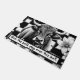 Het zwart-witte buffelpatroon dient als een klassieke en tijdloze achtergrond, waardoor een visueel opvallend en evenwichtig canvas ontstaat. Dit patroon bestaat uit grote, gelijkmatige vierkanten met afwisselende zwart-witte kleuren, die een raster vormen dat een gevoel van orde en symmetrie toevoegt aan het ontwerp. Op de voorgrond staat een fel afgebeelde stier prominent tegen de achtergrond van de buffelcheck. De stier is ingewikkeld geïllustreerd in zwart-wit, met zijn onderscheidende kenmerken en texturen. Het gebruik van contrasterende tinten verbetert de diepte en dimensie van de stier, waardoor deze het middelpunt van de compositie is. Aan weerszijden van de stier bloeien delicate en elegante bloemen, die een vleugje natuurlijke schoonheid aan de scène toevoegen. De bloemen worden weergegeven in zwart-wit, waardoor hun ingewikkelde details kunnen schitteren tegen het gedurfde patroon van de buffelcontrole. De bloemelementen zorgen voor een zacht en organisch contrast met de geometrische stijfheid van de achtergrond, waardoor een harmonieuze mix van natuur en structuur ontstaat. Over het algemeen resulteert het zwarte en witte buffelpatroon, in combinatie met de stier- en bloemaccenten, in een visueel aantrekkelijk en samenhangend ontwerp dat rustieke charme combineert met een moderne esthetiek.