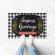 Welkom gasten met warmte en feestvreugde met behulp van deze persoonlijke deurmat. De klassieke zwart-witte buffel plaid achtergrond creëer's een gezellig, rustiek gevoel, terwijl de feestelijke holly accenten en elegante "Seasons Greetings" boodschap een vrolijke toon. Personaliseer het met je familienaam om het echt je eigen te maken. Deze duurzame deurmat is perfect voor het toevoegen van een feestelijke touch aan uw veranda of entree gedurende het vakantieseizoen.