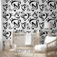 Wallpaper heeft een zwart-wit treble clef en bass clef hart patroon. Geweldig voor een muziek thema kamer!
