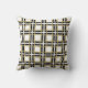 Een opvallend zwart, wit en goud geometrisch vierkant ontwerp maakt dit kussen zeer stijlvol en klassiek.
