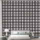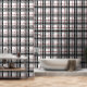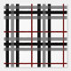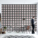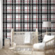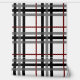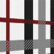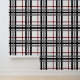 Een klassiek en lui vlakpatroon krijgt een stijlvolle draai door een klassieke combinatie van een witte achtergrond te combineren met zwarte en grijze staven met een rijk rood accent.