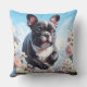 Zwart & Wit Frans Bulldog & Bloemen Kussen