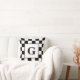 Stijlvolle kussens bieden een zwart-wit, ingecheckt grenspatroon met een groot aangepast monogram in het midden in een wit vierkant. Voeg je initiaal toe aan de zijbalk. De afwisselende zwarte en witte vierkantjes vormen het gewaagde geometrische patroon rond de randen. Klik hieronder op de link 'Rocklawn Arts' als je meer objecten in de categorie Zwart-wit wilt bekijken.