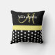 Zwart Wit Geel Monogram Script Polka Dots Kussen