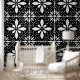 Een stijlvolle moderne zwart-witte geometrische abstracte vormen en kwartblad vormige schil en stok behang wandbehandeling, om uw bad, keuken, of elke kamer te moderniseren. Perfect als je in een huurappartement woont dat je persoonlijke stijl en aanrakingen van design nodig heeft om dingen pop te maken. Peel en stokbehang is een van de beste doe-het-zelf-hacks voor flatbewoners om hen meer controle te geven over hun interieur stijl! Ga wild met patronen en kleuren. Wordt geleverd in vloeiend en gestructureerd. Zorg voor de structuur van hobbelige gestructureerde muren en maak ze glad of gestructureerd voor gladde muren.