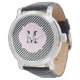 Eenvoudig en stijlvol, dit zwart-wit gestreepte monogram horloge is het perfecte accessoire voor elke outfit. Pas de "M" aan op jouw naam. Geweldig cadeau idee voor iedereen.
