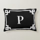 Decoratief zwart en wit Grieks Key stijl geometrische rechthoekige rand accent kussen. U kunt de moderne serif monogram lettertype stijl, grootte of kleur naar behoefte aanpassen. Pas deze effen kleur achtergrond en de motief afbeelding aan door uw favoriete kleuren te kiezen of uw interieur aan te passen. We hebben andere Griekse sleutelranden voor andere gevormde producten. Stuur een verzoek als je nog een cadeau nodig hebt.