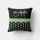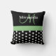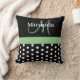 Zwart Wit Groen Monogram Script Polka Dots Kussen