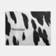 Dit realistische zwarte en witte afbeelding van gespikkelde koeienhuid geeft je thuis een zuidwestelijke smaak met het woord welkom in een fancy western lettertype.