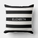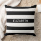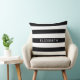 Zwart wit horizontaal preppy stripe Name Monogram Kussen