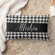 Zwart-wit Houndstooth & Hand belettering Script Kussen