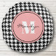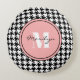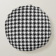 Zwart & Wit Houndstooth Roze Accent Rond Kussen
