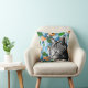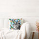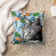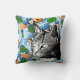 Leuk gooi kussen met een stijlvolle Japanse koi vis in een vijver patroon en trendy kat illustratie in zwart-wit.