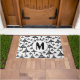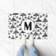 Zwarte witte kerstboompatroonmonogram Doormat. Moderne vakantieontwerp met een modern en abstract kerstboompatroon in zwarte en witte kleuren. Voeg je monogram toe. Geweldig kerstcadeauidee voor je vrienden en familie en perfecte kerstvakantiedecor voor je thuis.