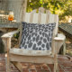 Accentreer je zwarte terrasmeubels met dit luipaard print buitenkussen. Dit kussen heeft een zwart-wit dierenprint op de voorkant met effen zwart op de achterkant. Getoond in een buitenstof, maar als u liever dit kussen binnenshuis gebruikt, gebruik dan de editor om te kiezen voor polyester of katoen, de keuze is aan u. Koop dit prachtige kussen voor jezelf of geef het als een geschenk aan die speciale iemand.